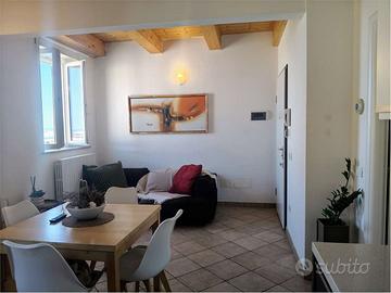 OSIMO a pochi passi dal cuore del centro , in un contesto signorile , vi proponiamo un elegante appartamento su due livelli , recentemente ristrutturato . Al primo piano , un accogliente soggiorno con cucina a vista , una camera e un bagno finestrato . Salendo al piano superiore, un raffinato soppalco ospita una camera matrimoniale con armadio su misura, un secondo bagno e un delizioso terrazzino con vista panoramica su mare e monti. Le finiture di pregio e la posizione strategica rendono questo immobile un ' opportunita' imperdibile , il tutto a 125.000
