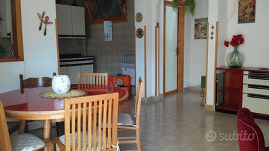 Villetta indipendente ed accogliente con accesso diretto in ampia zona living con angolo pranzo, accessoriato con tavolo e sedie; attiguo alla zona salotto, con divano tavolino e poltrone per godere una serata in relax o con un buon film. Dal la zona living si accede alla cucina oltrepassando un arco che circoscrive la cucina stessa, dotata di lavastoviglie, forno regolare, frigorifero, stoviglie e pentolame oltre ogni genere di comfort. La zona notte e' composta da una camera matrimoniale e una seconda camera per ragazzi. Bagno con doccia e servizi. all'esterno è presente un lavatoio e una lavatrice da 5 kg e stendibiancheria. il lato giardino, invece, è arredato con tavolo, sedie, ombrellone, barbecue per simpatiche grigliate all'aperto. Nel giardino oltre a piante ornamentali presente anche una doccia esterna con acqua calda e sedie sdraio. Il posto auto è privato nel giardino e con accesso con cancello automatico. La casa è fornita dei seguenti elettrodomestici: climatizzatore, frigo/congelatore, impianto TV satellitare, forno e cucina a gas. Appena comprati nuovi un secondo frigorifero, una lavatrice carica frontale da 5kg, TV-LED da 32 pollici. Classe energetica G. L'appartamento, in zona collinare fresca e ventilata, dista dal mare 5 minuti di auto. In passato abbiamo avuto lamentele con il quartiere anche per animali di piccola taglia per cui evitiamo la presenza dei ns. amici a 4 zampe. Per info e contatti sulle disponibilità di affitto mensile o settimanale per il periodo estivo e autunnale in locazione breve secondo le disposizioni normative nazionali vigenti regolate dal codice civile. Il resto dell'anno ce la viviamo noi di famiglia!
