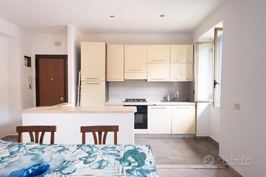 L'appartamento è caratterizzato da un'ottima esposizione che lo rende molto luminoso ed è composto da un ampio salone con angolo cottura e uscita su un balcone, due camere da letto (una matrimoniale con balcone privato) e un bagno.