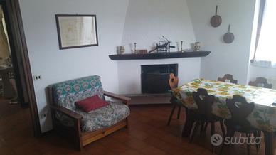 In piccolo condominio caratteristico con grande giardino condominiale e parcheggio auto riservato, stupendo trilocale con terrazza soleggiata e bellissimo panorama. L'alloggio e' di 75 mq. con tripla esposizione, grande soggiorno con divano matrimoniale e poltrona letto, cucinotto, camera matrimoniale e seconda camera con 3 posti letto e bagno. L'alloggio è arredato in stile rustico (mobili in pino), dotato di lavatrice, TV e di ogni comfort.