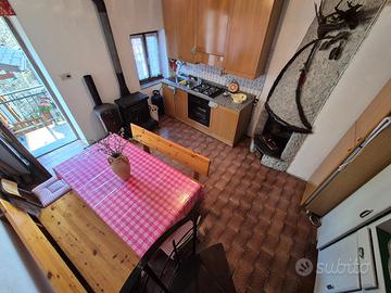 In tipica contradina alpina, dove relax e quiete la fanno da padroni, splendida porzione di casetta piccina ma carina, composta da cantina a volta,cucina con camino a piano primo, camera 4 posti letto a piano secondo con balcone panoramicio e bagno .