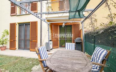 SPLENDIDO TRILOCALE DEL 2010 CON GIARDINO E TAVERNA! A Vaprio d'Adda, in elegante contesto del 2010 situata nella zona residenziale di Vaprio Sud, proponiamo in vendita soluzione con giardino e taverna senza lavori da preventivare. A piano terra troviamo soggiorno, cucina abitabile, disimpegno, due camere e bagno, mentre il piano interrato è composto dalla taverna, un altro bagno e pratico ripostiglio, oltre all'accesso diretto alla zona box tramite un'altra porta blindata. La soluzione è completata dal box doppio e dal giardino che percorre i 2 lati dell'immobile già dotato di irrigazione automatica con sensore pioggia e gocciolatoio per sistema di annaffiatura apposito per le siepi. Internamente l'immobile è rifinito con pavimentazione in gres porcellanato e infissi in legno doppio vetro già dotati di zanzariere e inferriate, videocitofono, predisposizione impianto allarme volumetrico e perimetrale, aria condizionata, riscaldamento a pavimento diviso a piano con predisposizione per il secondo termostato da mettere in taverna, fotovoltaico per acqua calda e isolamento a cappotto. Il complesso rimane in zona residenziale a due passi da tutti i servizi di prima necessità raggiungibili a piedi; troviamo il supermercato Bennet a 100m, le poste 600m, comune e polizia locale a 1 km, ospedale a 750 m, carabinieri 600m e le scuole a 600m. Inoltre, vicino, possiamo trovare percorsi ciclo pedonali che conducono fino ai comuni di Groppello, Concesa e Trezzo sull'Adda. Ideale per chi cerca una soluzione in contesto recente, con il giardino e senza lavori da preventivare. DA VEDERE.CONTATTACI! - Classe: C - IPE: 130.60 kWh/mq anno