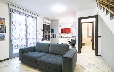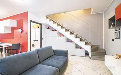 VAPRIO SUD: SFOGHI ESTERNI, DOPPI SERVIZI E BOX DOPPIO COMPRESO NEL PREZZO! In elegante e recente contesto del 2013, situato nella zona residenziale di Vaprio sud proponiamo in vendita soluzione con giardino piastrellato e box doppio, senza lavori da preventivare. L'appartamento si sviluppa su due livelli e gode di doppia esposizione (sud-ovest). L'immobile è composto al primo piano da soggiorno con cucina a vista, disimpegno con vano lavanderia e bagno finestrato con doccia. Al piano superiore troviamo le due stanze, un ulteriore bagno con vasca ed un ripostiglio. Completano la soluzione il box doppio e i piacevoli spazi esterni tra cui il giardino piastrellato al piano terra, un terrazzo di 20 mq esposto a sud ed un balcone. Internamente è rifinito con pavimentazione in gres porcellanato nella zona giorno e parquet nella zona notte, travi a vista al piano superiore, serramenti in legno doppio vetro già dotati di zanzariere, lucernari con apertura elettrica, tende da sole, un videocitofono per piano, predisposizione per l'aria condizionata e l'allarme, riscaldamento autonomo a pavimento differenziato per piano e pannelli solari privati per l'acqua calda. Il complesso rimane in zona residenziale a due passi da tutti i servizi di prima necessità raggiungibili a piedi; nelle immediate vicinanze troviamo il supermercato Bennet, le poste, l'ospedale, le scuole e la fermata degli autobus. Il casello autostradale di Trezzo sull'Adda, la metropolitana di Gessate e la stazione ferroviaria di Cassano d'Adda, distano pochi Km. Inoltre appena fuori il residence possiamo trovare percorsi ciclo pedonali che conducono fino ai comuni di Groppello, Concesa e Trezzo sull'Adda. Ideale per chi cerca una soluzione in contesto recente, con spazi esterni e senza lavori da preventivare. IMPERDIBILE! CONTATTACI!