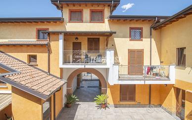 QUADRILOCALE CON CANTINA E BOX DOPPIO A Vaprio d'Adda, in elegante contesto del 2009, situato in prossimità della zona residenziale di Vaprio sud con tutti i servizi principali raggiungibili a piedi, proponiamo in vendita quadrilocale senza lavori da preventivare. L'appartamento si sviluppa su due piani e gode di tripla esposizione (Sud-Nord-Est). Al primo piano, un accogliente soggiorno e una cucina abitabile si affacciano su due ampi sfoghi esterni, perfetti per godere di momenti di relax all'aperto, mentre il ripostiglio sottoscala aggiunge praticità. Al piano superiore, le tre stanze ed un secondo bagno anch'esso finestrato completano la soluzione. La cantina e il box doppio in lunghezza al piano interrato offrono ulteriore spazio per le tue esigenze. Internamente è rifinito con pavimentazione in ceramica e parquet, infissi in legno doppio vetro, videocitofono, predisposizione aria condizionata, impianto d'allarme e caratteristiche travi a vista al secondo piano. Il riscaldamento è contabilizzato con caldaia condominiale sostituita nel 2023. Ideale per chi cerca una soluzione in contesto recente, completo di box e senza lavori da preventivare. LIBERA SUBITO! CONTATTACI!
