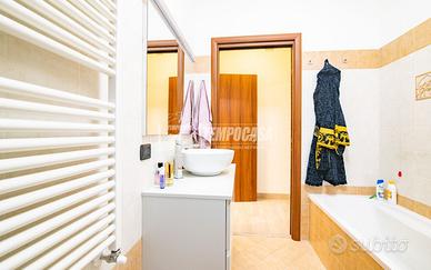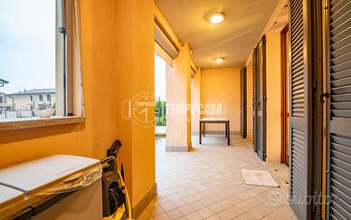 STUPENDO TRILOCALE CON GIARDINO E BOX DOPPIO A Vaprio d'Adda, in elegante contesto situato nella zona residenziale di Vaprio Sud, proponiamo in vendita trilocale, facilmente trasformabile in quadrilocale, con giardino privato. L'appartamento si sviluppa tutto su un unico livello, gode di doppia esposizione (Est-Ovest) ed è così composto: ampio soggiorno doppio con accogliente zona living dotato di camino con impianto canalizzato e zona pranzo finestrata, facilmente convertibile nella terza camera, cucina abitabile, due disimpegni, due camere da letto e doppi servizi, uno dotato di vasca e l'altro di box doccia. La soluzione è completata dallo splendido giardino di circa 150mq accessibile dalla zona giorno, con portico coperto piastrellato e irrigazione automatica, perfetto per godere di piacevoli giornate all'aperto. Non mancano un balcone loggiato accessibile da una delle camere, un box doppio e una cantina. Internamente la soluzione è rifinita con pavimentazione in laminato e ceramica, infissi in legno doppio vetro, videocitofono, porta blindata, allarme perimetrale, tende da sole, riscaldamento centralizzato a pavimento e predisposizione aria condizionata. La posizione strategica permette di raggiungere facilmente servizi di prima necessità come supermercati, scuole e ospedale. Inoltre, i percorsi ciclo-pedonali verso Groppello, Concesa e Trezzo sull'Adda offrono opportunità per attività all'aperto. Ideale per chi cerca una soluzione già pronta per essere abitata, con il giardino privato e dotata di tutti i confort. La possibilità di trasformarlo in quadrilocale, rende questa soluzione ideale per famiglie. IMPERDIBILE.CONTATTACI! - Classe: B - IPE: 84.07 kWh/mq anno