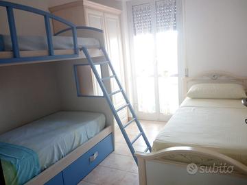 Trilocale A vasto Marina centro su viale Dalmazia a due passi dal mare, dalla pista ciclabile e dalle attrazioni serali, terzo piano con scale esterne come in foto, composto da camera matrimoniale, cameretta con tre letti, salone cucina con divano letto, bagno con doccia e lavatrice, due balconi di cui uno lato mare attrezzato, condizionatore e ventilatori all' occorrenza . Posto auto di proprietà e al coperto. Palazzo ristrutturato. Disponibilità a San Salvo marina in centro (Shangrila)