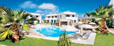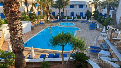 Il bilocale con cinque posti letto è collocato a piano primo del villaggio Cala La Luna e si estende su una superficie di 45 mq. Il periodo a disposizione sono le due settimane a cavallo del ferragosto e precisamente settimane 32ª e 33ª. E' composto da un soggiorno-cucina con divano letto, un disimpegno, un bagno con doccia, zona notte con letto matrimoniale e balcone completo di tavolo e sedie. Completamente arredato e ben corredato, è predisposto di aria condizionata e di collegamento wi-fi gratuito. Il Villaggio offre i seguenti servizi: piscina per adulti e bambini, solarium, zona giochi, ristorante, bar, gruppo animazione, anfiteatro, mini-club, diving center, escursioni, giro dell'isola e tante altre attività.