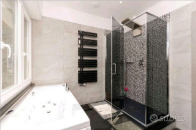Il bagno rappresenta un'altra perla dell'appartamento poiché la grande doccia con soffione a cascata,la vasca idromassaggio con cromoterapia e l'impianto stereo non fanno risultare il vano come un semplice servizio ma come una vera e propria zona relax.