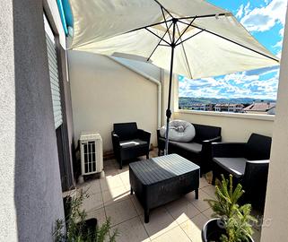 Splendido Duplex Recente Costruzione (2020) con Ampi Terrazzi - Osteria Nuova Cerchi una casa moderna, pronta da abitare e con spazi esterni introvabili? In una zona residenziale tranquilla a Osteria Nuova, proponiamo in vendita un luminoso appartamento duplex situato al secondo e ultimo piano di un condominio d'avanguardia costruito nel 2020. L'immobile si distingue per le finiture attuali, l'efficienza energetica e una metratura esterna che raddoppia vivibilità della casa. Distribuzione degli spazi Piano Secondo (Zona Giorno & Notte): Ingresso su un accogliente e luminoso soggiorno con cucina a vista. Camera matrimoniale spaziosa. Bagno finestrato con finiture moderne. Ampio terrazzo: uno sfogo esterno ideale per pranzi all'aperto, accessibile dalla zona giorno. Piano Mansardato (Zona Relax/Notte): Cameretta versatile (ideale come studio o stanza per ospiti). Secondo bagno funzionale. Due grandi terrazzi abitabili: veri e propri solarium privati, perfetti per creare zone lounge, orti urbani o aree fitness all'aperto. Dettagli Tecnici & Superfici Superficie lorda: 85 mq Superficie aree scoperte (terrazzi): 65 mq Anno di costruzione: 2020 (garanzia di isolamento termico e acustico di alto livello). Piano: Secondo + Mansarda (ultimo piano). Perché scegliere questa casa? È la soluzione perfetta per giovani coppie o professionisti che cercano una casa "chiavi in mano" senza lo stress delle ristrutturazioni. I 65 mq di terrazzi rappresentano un plus rarissimo, offrendo una vista aperta e una privacy totale per i tuoi momenti di relax.