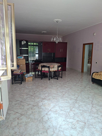 Descrizione: Appartamento di 142 mq a piano terra facente parte di un più ampio fabbricato ad uso abitativo sviluppato su tre piani fuori terra, collegati internamente mediante vano scala ad uso comune. Munito anche di accesso indipendente dal retro. L'appartamento è composto da un'ampio soggiorno che eventualmente può essere suddiviso in tre camere abitabili tutte finestrate ( finestre in alluminio con persiane ), un'ampia cucina con termo-camino, una camera da letto e due bagni. Il riscaldamento è autonomo e può essere usato sia con termo-camino che con caldaia.
