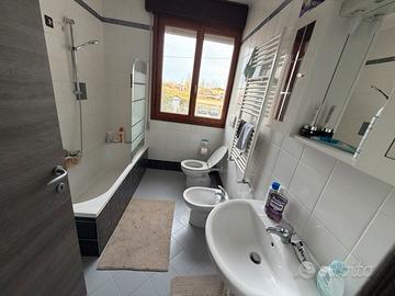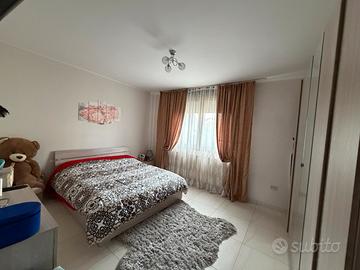 Situato in un contesto tranquillo, l'appartamento si sviluppa su una superficie di 95 mq ed è caratterizzato da ambienti ampi e ben illuminati grazie alla doppia esposizione. o Zona Giorno: Ingresso accogliente che conduce a un ampio soggiorno con accesso diretto al balcone. La cucina è abitabile, separata e perfettamente organizzata, anch'essa con sfogo esterno. o Zona Notte: Un disimpegno funzionale separa la zona giorno dalle due grandi camere da letto (una attualmente adibita a palestra/studio, oppure un'altra camera letto . o Bagno: Elegante e spazioso, dotato di vasca/doccia e finiture in ceramica nei toni del grigio e bianco. o Dettagli di Design: Pareti con finitura materica ad effetto "spatolato" nel soggiorno, pavimentazione in gres chiaro uniforme in tutta la casa e porte interne moderne in legno venato grigio. L'immobile include una comoda cantina situata in corpo staccato, ideale come deposito extra per biciclette o attrezzatura stagionale. Possibilità di parcheggio nelle immediate vicinanze dell'ingresso condominiale.per maggiori informazioni mandate un messaggio whatsapp 3923629836