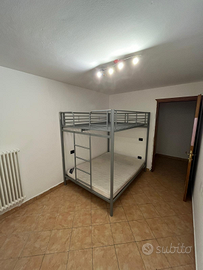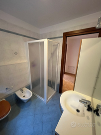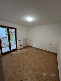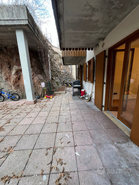 Appartamento a piano rialzato composto da ingresso con soggiorno e cucina, bagno con doccia, camera matrimoniale, camera singola. Terrazzo esterno. Una cantina piccola e una cantina/taverna con bagno. Garage. Posti auto esterni comuni. Riscaldamento centralizzato.