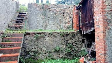 Bucine. Appartamento 1 piano, cucina soggiorno con camino, 3 camere da letto, bagno, ripostiglio + cantina, corte esterna su due livelli e terreno recintato. Da ristrutturare.