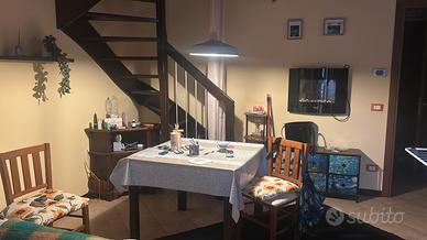 Appartamento al primo piano,appartamento su 2 piani ingresso indipendente, cucina, ampio soggiorno , 2 camere da letto, 1 bagno, 2 balconi, 2 posti auto riservati all aperto, ampia soffitta, tutto travi a vista.