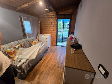 Vendo casetta interamente in legno formata entrata(soggiorno) cucina completa di elettrodomestici nuovi mai usati ,bagno completo con doccia, e camera da letto. La casetta si trova nel campeggio Castello dei Fieschi a Montoggio . Il campeggio offre piscina e parcheggio e altri servizi.
