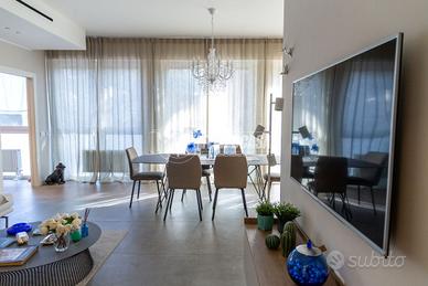 Gli interni sono stati rinnovati totalmente nel 2022 con scelta di finiture moderne e di pregio: porta blindata e interne nuove, pavimenti in gres porcellanato e parquet nelle camere, serramenti Oknoplast con zanzariere e tapparelle antisfondamento automatizzate, bagni con sanitari sospesi e docce, illuminazione led nel controsoffitto e segnapasso, impianto elettrico e idraulico certificati, riscaldamento autonomo con caldaia a condensazione, climatizzazione canalizzata, impianto di domotica, allarme volumetrico e perimetrale, videocitofono. Classe Energetica D !!! Mai abitato !