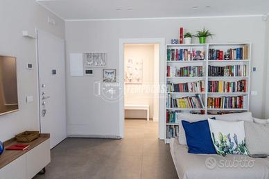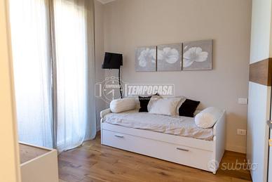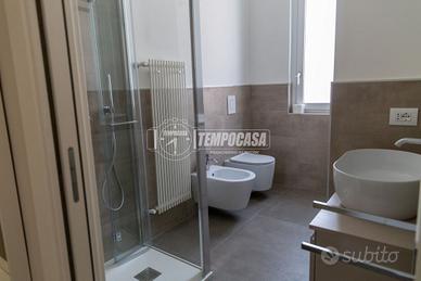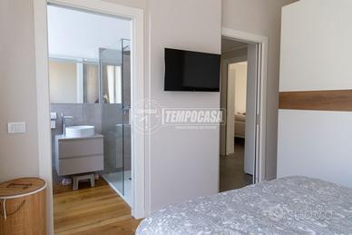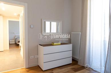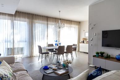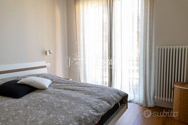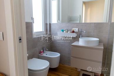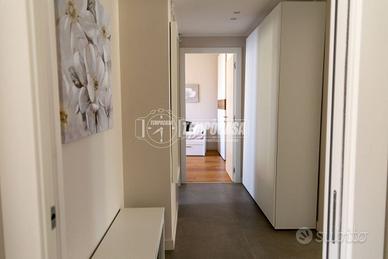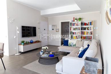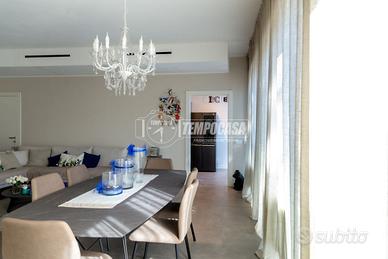 Posto al piano primo, libero sui due lati, esposizione Est/Ovest, di 110 MQ: entrando la vista si apre sull'ampio e luminoso salone doppio che ben permette di dividere la zona salotto dal pranzo, ambiente pronto ad accogliere anche numerosi ospiti, adiacente alla cucina abitabile; ripostiglio e disimpegno che conduce alla zona notte composta da una matrimoniale con balcone e servizio privato finestrato, seconda camera con balcone coperto, bagno padronale, anch'esso finestrato, con angolo lavanderia.