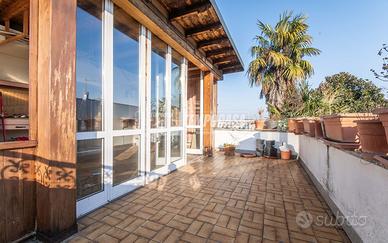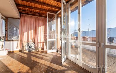 INGRESSO su SOGGIORNO di 39 mq con accesso al TERRAZZO di 30 mq, CUCINA SEPARATA di 5 mq, DISIMPEGNO che conduce alla PRIMA CAMERA di 20 mq, SECONDA CAMERA di 16 mq, TERZA CAMERA di 12 mq, PRIMO BAGNO con vasca e SECONDO BAGNO cieco con doccia.