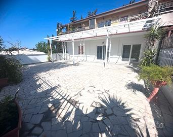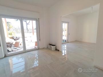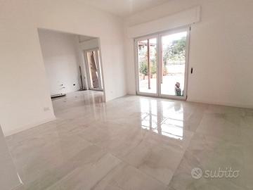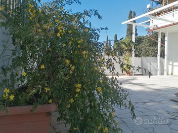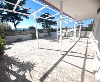 Situato sulla principale via di Vermicino, a metà strada tra i quartieri Vermicino e Frascati [Comune di cui fa parte catastalmente], nelle immediate vicinanze dei negozi e dei servizi del quartiere [Vermicino], della nuova metro C - fermata "Borghesiana" - della Banca d'Italia, nonchè dalla cittadina di Frascati, in posizione strategica dal punto di vista viario [via Casilina, via Tuscolana, il G.R.A. di Roma] ma allo stesso tempo ubicato in una zona residenziale ed abitata, silenziosa e circondata dal verde, proponiamo in vendita un ampio appartamento di 115 mq (circa) calpestabili, completamente ristrutturato, posto al piano primo di una palazzina in parte in cortina ed in parte in tinta, in buone condizioni di conservazione e manutenzione, composta di sole n. 4 unità abitative e pertanto PRIVA di condominio, composto da un ingresso che si trasforma in disimpegno, un salone doppio con cucina a vista [che è possibile trasformare in quarta camera da letto], due ampie camere matrimoniali, di cui una padronale ed una leggermente più piccola con balcone, una comoda cameretta, n. 2 bagni di cui uno ampio, finestrato, con vasca ed un secondo bagno di servizio con doccia. Completano la proprietà un terrazzo di 100 mq (circa) con vista panoramica sui Castelli Romani ed un porticato ampio, chiudibile con vetrate panoramiche senza permessi specifici.