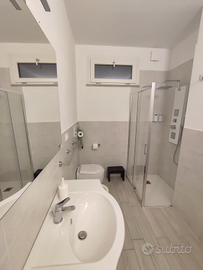 Appartamento bilocale al piano terra di 58 mq arredato con garage e cortile, composto da ingresso in cucina abitabile attrezzata con cucina Scavolini e lavastoviglie, bagno con box doccia e lavatrice, camera da letto con accesso a piccolo cortile posteriore.