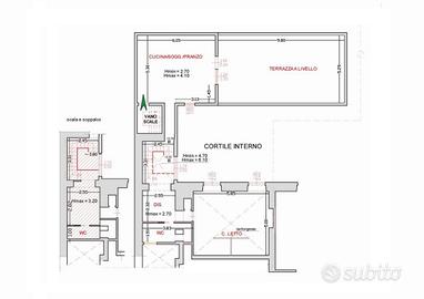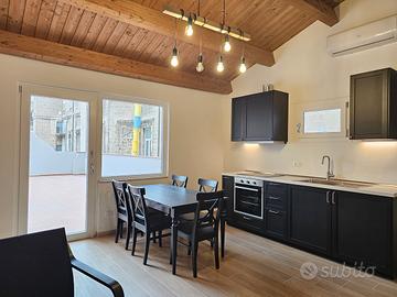 L'appartamento è composto da: ingresso-cucina-soggiorno affacciante su ampia terrazza a livello di pertinenza esclusiva (50 mq), corridoio con ripostiglio, disimpegno, camera da letto matrimoniale con cabina armadio, bagno, cameretta su soppalco con bagno.