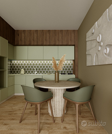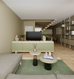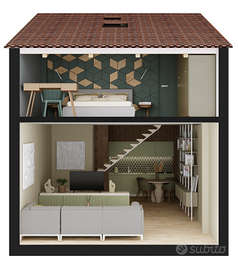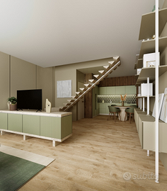 -Piano Terra: Ampio salone con angolo cottura, perfetto per convivialità e relax,bagno di servizio con aeratore.