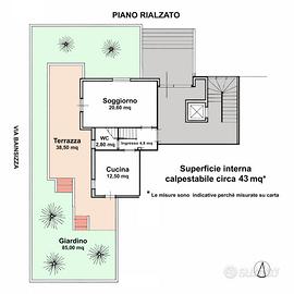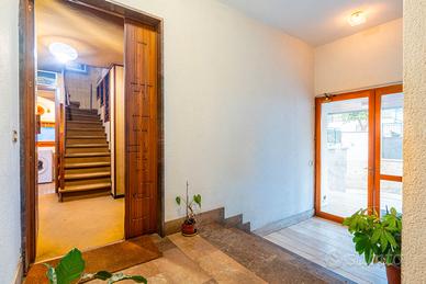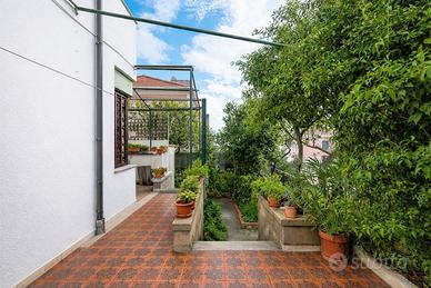 L'immobile presenta una distribuzione interna tipica delle villette: la zona giorno si sviluppa al piano rialzato, con accesso diretto alla terrazza e al giardino a livello, mentre la zona notte è collocata al primo piano. L'ingresso avviene dal vano scala condominiale ed è possibile accedere all'abitazione da entrambi i livelli.