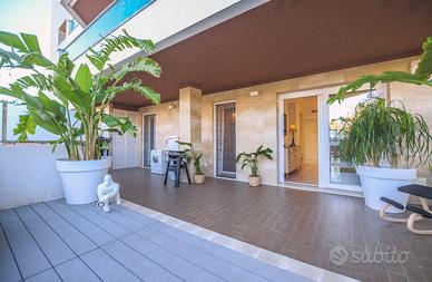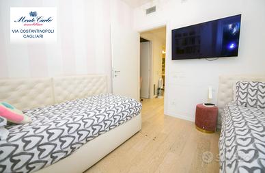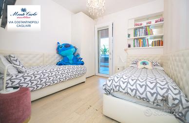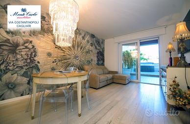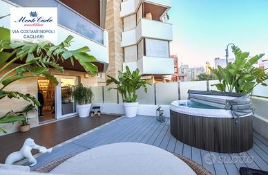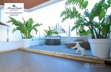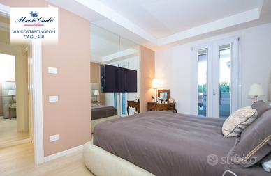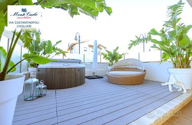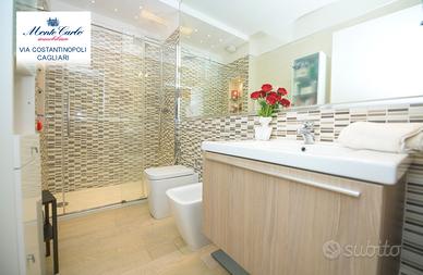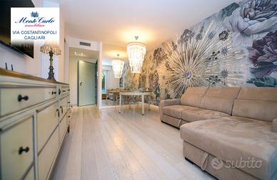 Cagliari Genneruxi, in nuovo palazzo dotato dei più moderni comfort luminosissimo tri locale da 70 mq interni e 60 esterni, con spazioso garage. Piano rialzato. L' immobile nel suo ambiente interno è diviso in soggiorno prospiciente alla terrazza, cucinotto su misura separato. Nella zona notte troviamo due comode camere da letto luminosissime e un bagno con cabina doccia. Nella parte esterna troviamo una comoda terrazza, attrezzata con Jacuzzi, zona barbecue e prendisole. Classe A4
