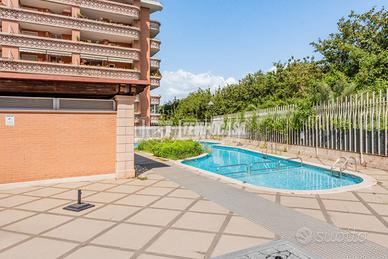 Ampia piscina condominiale, perfetta per il relax estivo, curatissimo parco giochi per bambini, spazi comuni verdi e ben tenuti.