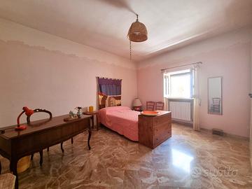 L'abitazione è composta da ingresso su disimpegno, grande salone, cucina con camino e zona pranzo, 2 bagni, ripostiglio, 4 camere, grande balcone interno, balconi esterni e veranda angolare.