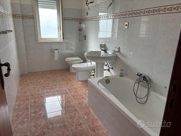 Bagno con vasca e funzionale ripostiglio.