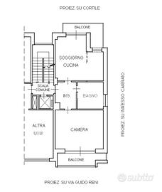La soluzione è composto da: ingresso con disimpegno, zona giorno con angolo cottura e uscita sul primo balcone, ampia camera di letto con secondo balcone e bagno.