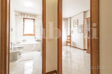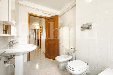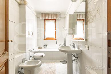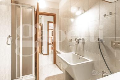 Completa la proprietà un posto auto scoperto in area condominiale e una cantina di 20 mq nel piano seminterrato raggiungibile anche tramite ascensore .