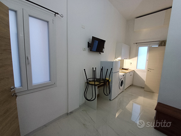 Luminoso e climatizzato, dotato di un bagno privato e un cucinotto attrezzato con piastra a induzione elettrica, frigo e freezer. Gli arredi includono tavolo, sedie e armadio , lavatrice angolo cottura completo e letto singolo. Le spese condominiali sono di 25 euro mensili e comprendono anche la tari, mentre l acqua e la luce sono a parte in base al consumo del proprio contascatti, il canone di locazione richiesto e' di 600 euro mensili, rendendo un'opzione conveniente per chi cerca comfort e praticità. No Residenza no animali