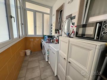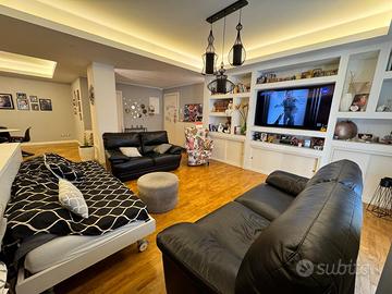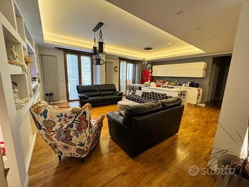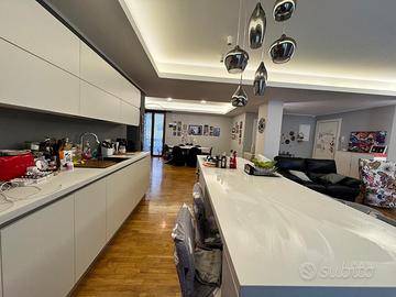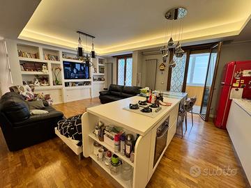 RIONE ITALIA - Nel tratto compreso tra via Lazio e via Puglia, a pochi passi da via Liguria e da viale Magna Grecia, in zona fortemente commerciale e servita, proponiamo in stabile ben tenuto, ampio appartamento al terzo piano COMPLETAMENTE RISTRUTTURATO con materiali e finiture di pregio. L'immobile è composto da ingresso in grandissima zona living che contiene salone, soggiorno e cucina con isola, il tutto con balcone esterno e balcone interno parzialmente chiuso a veranda, camera da letto con cabina armadio con altro balcone su via Lombardia, altra camera con balcone interno, tre ripostigli, due bagni con box doccia e veranda con zona lavanderia. L'unità immobiliare è stata ristrutturata circa sei anni fa e ha pavimentazione in parquet Teak in massello, porte interne laccate bianco alcune a scrigno, infissi in pvc colore rovere dorato completi di triplo vetro a controllo solare e tre posizioni di apertura, veranda in pvc bianco completa di triplo vetro satinato, cassonetti in pvc color rovere, avvolgibili in alluminio, zanzariere, porta blindata con pannello interno laccato bianco, tre climatizzatori Fujtsu a pompa di calore, impianto di riscaldamento autonomo con termoarredo, abbassamento di soffitto con faretti e luci led, tapparelle elettriche, bagni di design moderni. E' compreso nel prezzo la parete attrezzata in cartongesso con ante, cucina con isola e cabina armadio attrezzata. Completa la proposta un POSTO AUTO di proprietà nel cortile circostante con cancello d'ingresso automatico. SUPER RIFINITO E PRONTO DA ABITARE. POSSIBILITA' DI CREARE LA TERZA STANZA DA LETTO VISTE LE DIMENSIONI IMPORTANTI DELLA ZONA GIORNO.