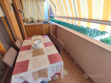 Proponiamo in vendita un luminoso appartamento situato al secondo piano di un edificio servito da ascensore, composto da ingresso, ampio soggiorno con cucina open space, due camere da letto, doppi servizi e due spaziosi balconi. Completa la proprietà una comoda cantina al piano seminterrato. L'immobile viene venduto comprensivo di una cucina attrezzata in ottimo stato completa di forno, frigorifero e lavastoviglie, parete attrezzata con tavolo, climatizzatore caldo/freddo, bagno padronale ristrutturato con mobile lavabo e specchiera, doppie tende esterne (pioggia/sole) per entrambi i balconi, quattro porte in legno nuove e zanzariere.