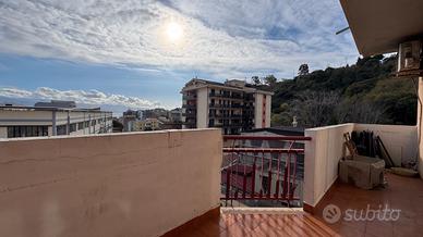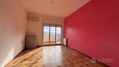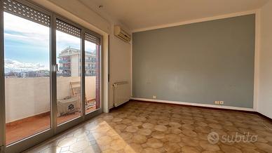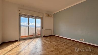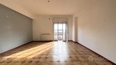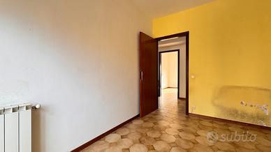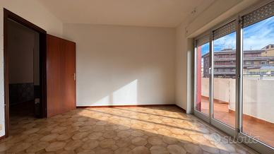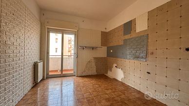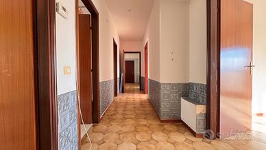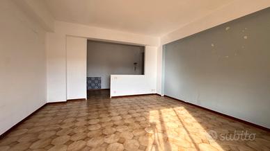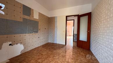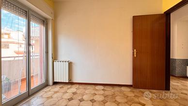 Sulla sinistra troviamo un soggiorno di forma quadrata. Proseguendo, una cucina abitabile con portafinestra che affaccia su un comodo balcone. La disposizione attuale consente, se non necessarie le tre camere, di ampliare facilmente il salone.