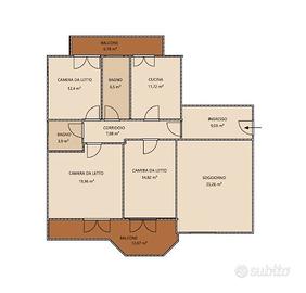L'appartamento, arioso e luminoso, si apre su un corridoio che distribuisce in modo ottimale tutti gli ambienti, separando in modo funzionale la zona giorno dalla zona notte.