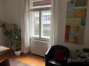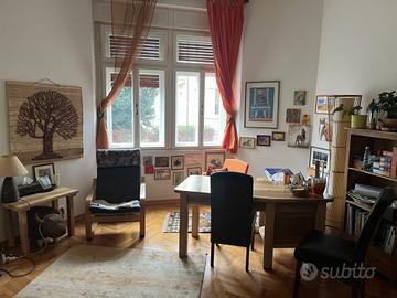 in casa d'epoca, vendiamo intero piano, circa 160 mq., attualmente composto da ingresso, soggiorno, cucinino con tinello, 3 stanze doppie, biservizi finestrati, studio ed ampio disbrigo. Giardino privato di 145 mq., cantine, soffitta e garage privato. Termoautonomo