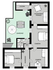 Ingresso, ampio salone, cucinotto separato dal soggiorno, tre camere da letto di generose dimensioni, bagno finestrato e completo di tutti i servizi.