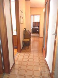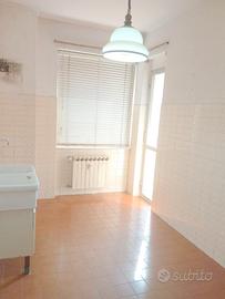 Appartamento da rimodernare, piano alto con due ascensori, 85 mq. calpestabili, composto da: atrio, soggiorno con bel terrazzo, ( possibilità di unificare atrio e soggiorno creando un ampia zona open-space, vedi planimetria), cucina abitabile, disimpegno, matrimoniale, spaziosa singola con terrazzino, 2 bagni finestrati e ripostiglio. Facciate con cappotto termico, caldaia recentissima. Posti auto condominiali. Posizione tranquilla e soleggiata.