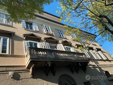 VIA ROMAGNA bassa in splendido palazzo storico proponiamo ultimo piano (terzo) (no ascensore ma presente un montacarichi sempre attivo) parzialmente mansardato, con abbaini e finestre, in ottime condizioni interne, luminoso e tranquillo, composto da : corridoio d'ingresso, ampia zona giorno con travi a vista, cucina arredata, ampia matrimoniale con doppia finestra, seconda matrimoniale, bagno finestrato completo con doccia finestrato, ripostiglio finestrato con lavatrice, riscaldamento autonomo, serramenti finestre e abbaini in alluminio. Possibilità di doppio ingresso e separazione di una delle stanze. In fase di certificazione energetica.