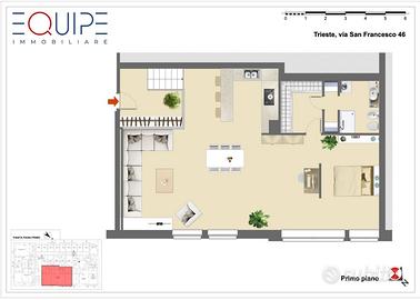 Originale e moderno loft situato al primo piano, caratterizzato da un ampio open space con zona giorno e angolo cottura, zona notte, cabina armadio, un ampio disimpegno attrezzabile e un comodo bagno completo.
