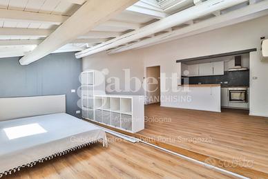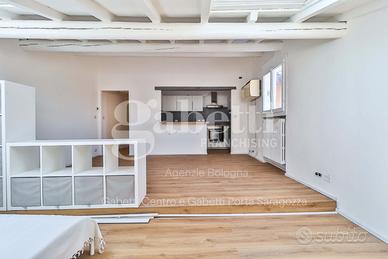 Nel cuore del centro storico a pochi passi da Piazza Aldrovandi, in palazzina tipica bolognese, proponiamo in vendita luminoso monolocale mansardato con vista panoramica sui tetti della città.