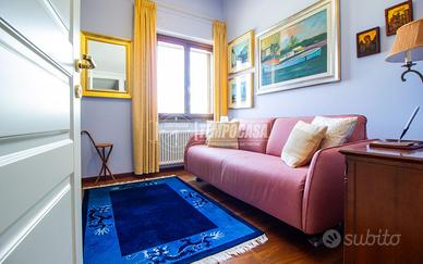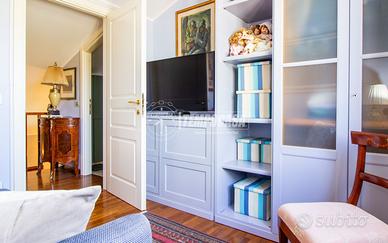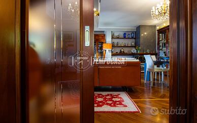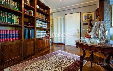 Elegante salone separato da una vetrata scorrevole realizzata su misura con libreria annessa, il salone ha un ampio camino;