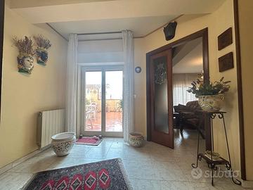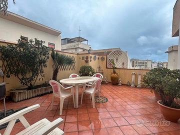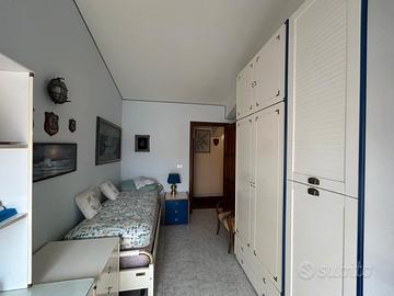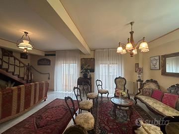 grande appartamento su due elevazioni (piano 4° e 5°), con ascensore e con una superficie complessiva di 212 mq. L'immobile si compone di ingresso su disimpegno, cucina abitabile, studio, due bagni finestrati, ripostiglio, salone doppio con scala che conduce al piano superiore oltre balconi a perimetro e veranda. Al piano superiore sono collocate tre camere da letto tutte servite da terrazzino a livello ed un ulteriore bagno con angolo lavanderia e balcone panoramico. Costituisce pertinenza dell'appartamento un posto auto numerato, una cantina al piano terra ed è compreso nel prezzo un garage di 21 mq. al piano seminterrato.