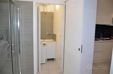 L'appartamento è balconato, luminoso e climatizzato, con servizi nuovi e porte interne artigianali.