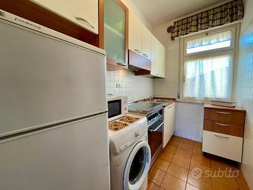 L'abitazione, situata al primo piano e con giadino di proprietà al piano terra recintato e chiudibile da cancello, si apre su un luminoso soggiorno con cucina separata e accesso diretto a una grande terrazza coperta, ideale per pranzi e cene all'aperto; la terrazza è dotata di barbecue e, se desiderato, può essere chiusa per creare uno spazio vivibile anche nei mesi più freddi.