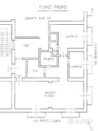 L'immobile è composto da un ingresso su un ampio salone doppio prospicente su via XXVII Luglio e via Ghibellina con tre balconi, due stanze da letto prospicienti la via Ghibellina entrambe con il balcone, di cui quella padronale con il bagno in camera, una cucina ed un bagno padronale.