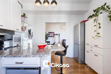 - cucina con penisola, separabile dalla zona living, tramite ante scorrevoli,